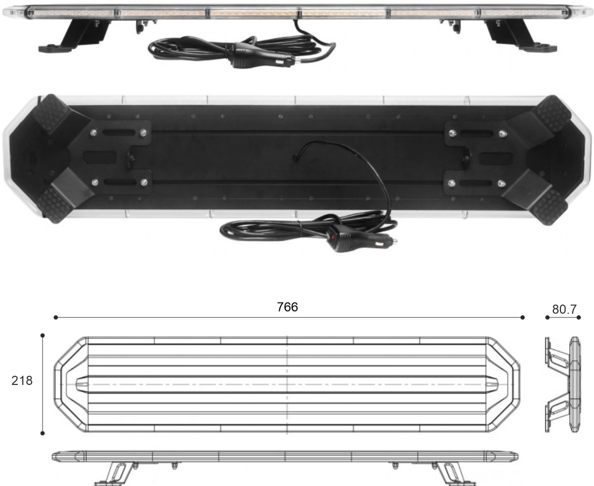 WARNING LED BAR 132 LED 12/24V 776x218x80,7mm 82W